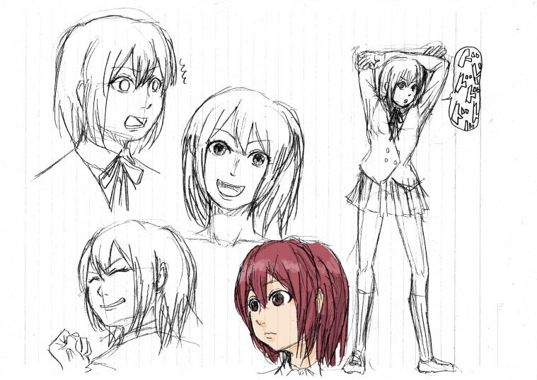 みのりんならジョジョ立ちくらい余裕でやってくれるはず。あと、描いてみて目を見開いた笑顔は結構怖いものなのかもしれないと思ったです。見開きがちなのはアニメ版の影響ですが、黒目がちな絵柄よりよく馴染みます。こっちのが好きです。黒目を楕円で描くのには抵抗があります……。
