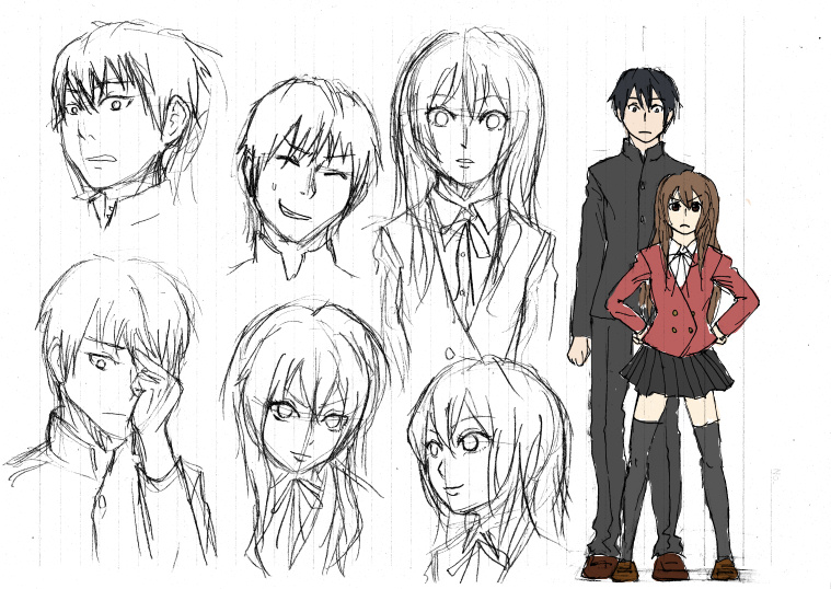 竜児はもっと目つき悪いな。これじゃ普通にイケメンだ。竜児は自称「目つきが悪いだけで顔はそこそこ」なので、改良の余地がありそうです。あ、前髪長めだったな。二巻以降の挿絵だともみあげとかも結構ばさばさしてんですよね。
